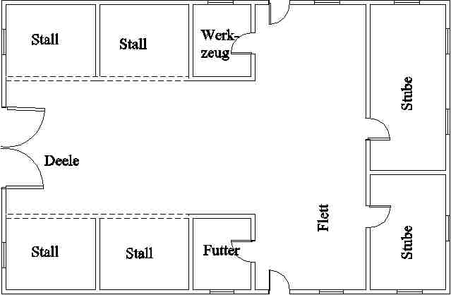 Bei einem Vierständerbau handelt es sich um eine in Westfalen und Niedersachsen weit verbreitete Form des Niederdeutschen Hallenhaus. Der typische Grundriss eines solchen Hallenhauses ist auch beim Hof Westermeier deutlich zu erkennen.